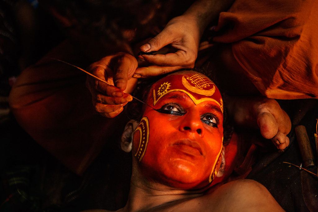 ‘Make-up Session’, Kerala, India. Settings: ISO 1600, 65 mm, f/2.8, 1/40s