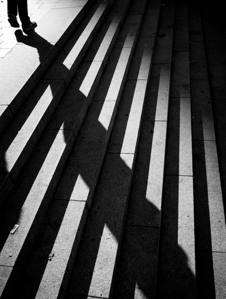 The characteristics of light falling on the subject – direction, color, intensity of the light – determine the quality of the shadow. Shadows are often used to add drama and abstractness to an image, and also sometimes present an opportunity to use juxtaposition as a compositional tool.