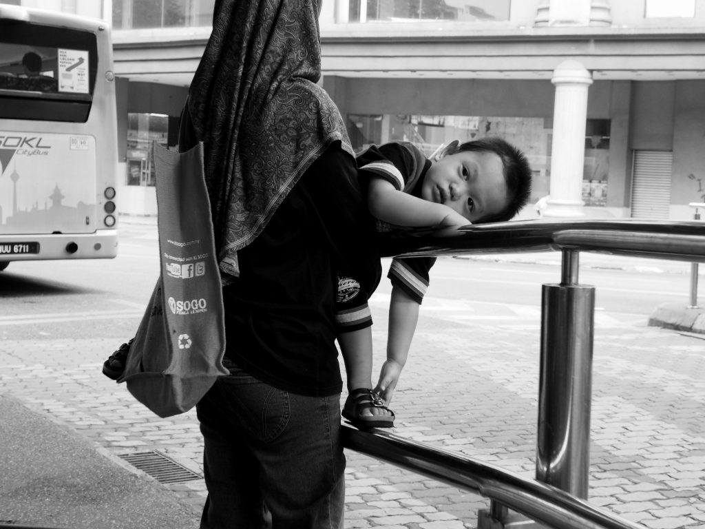 Using composition to create emotion will often utilize other techniques as well as to help boost the message. This photograph was created and composed to help create the emotions of sadness, loneliness, and isolation. The composition created this feeling by making the boy small within the frame. Everything else in the frame points right toward him as leading lines.