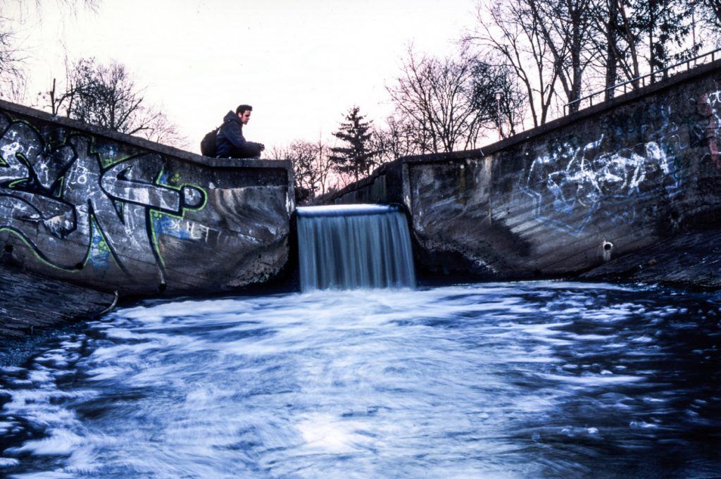 This makes him the subject and the center of attention. What other techniques have been employed to increase the emotional level? The color has been skewed toward the blue spectrum to give a feeling of cold and isolation. Also, the choice of the location was important. A waterfall would normally be a comforting icon, but in this case, the waterfall is surrounded by graffiti which adds to a feeling of urban blight and despair.