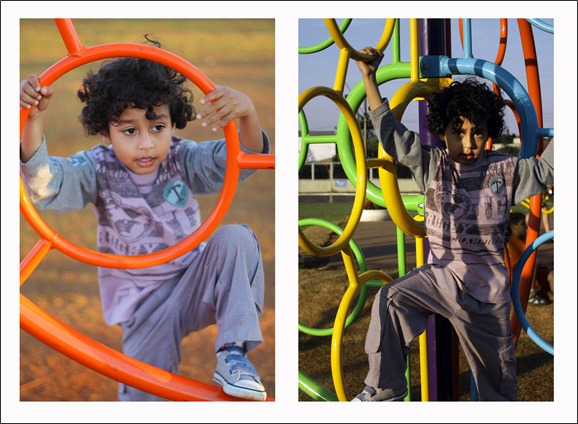 These two photographs of the young boy playing at the local park are a perfect example of how lighting can completely change the emotional context of a photograph. The photographs were taken on the same day, and literally within an hour of each other. Yet, each one conveys a much different mood.