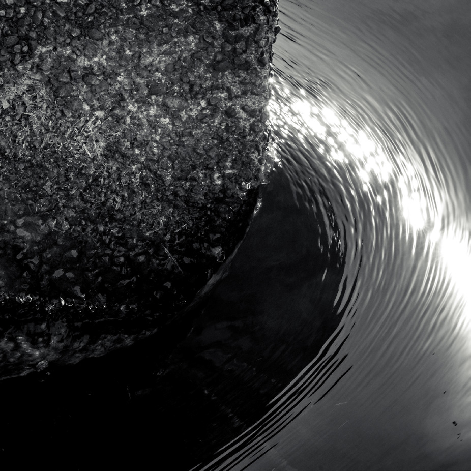 In this image it was the rough texture of the concrete wall that caught my eye. I chose to juxtapose the rugged, mossy wall with the smooth, fast moving stream. This created a pleasing contrast, heightened by the sparkling highlights of the water and the dark water near the wall. Photo by David Veldman