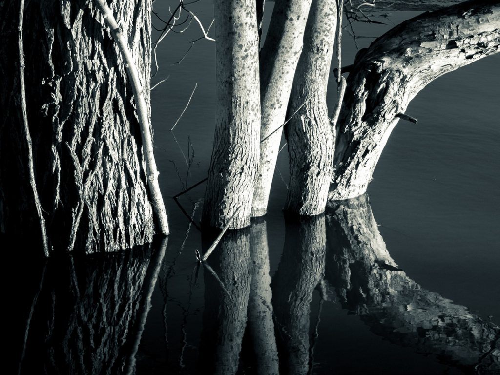 I captured this image of the tree trunks in a nearby town, where spring runoff had flooded the roadsides. A tight crop kept the attention focused on the trees, and the dark, still water did an excellent job of creating a window to the upside-down world. Photo by David Veldman