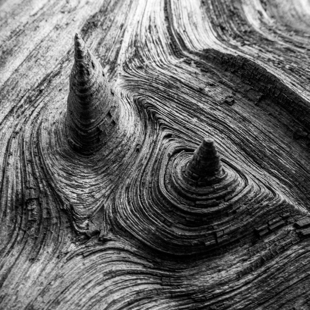 This image above almost appears to be a surreal aerial landscape. In fact, it is a close-up shot of two tiny protrusions on a rotting tree stump. When I first saw the stump, I knew something had captured my attention but I could not put my finger on it. After a few unsuccessful shots of the entire stump, I realized that the flowing lines and rough texture had caught my eye, and I chose to use a close-up shot to emphasize those elements.
