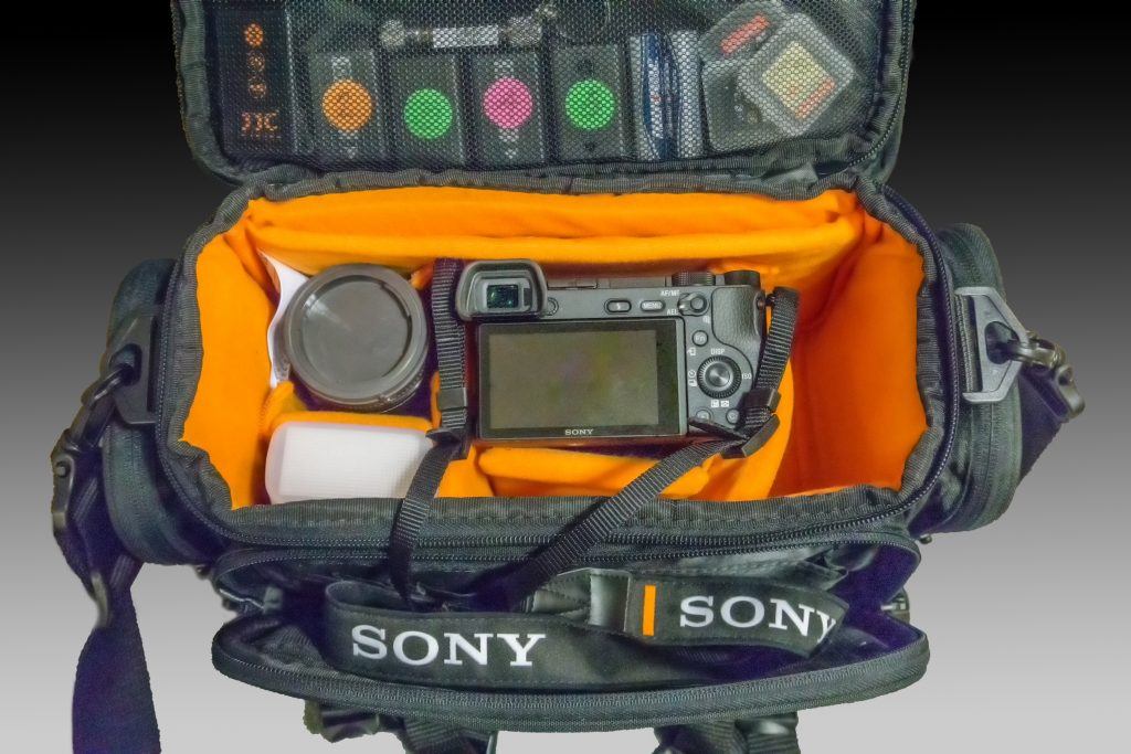 The empty space on the right is where my A6000 (the camera that made this picture) goes, usually with the little “kit” pancake zoom that fits handily in that small space. Photo by Charles Haacker