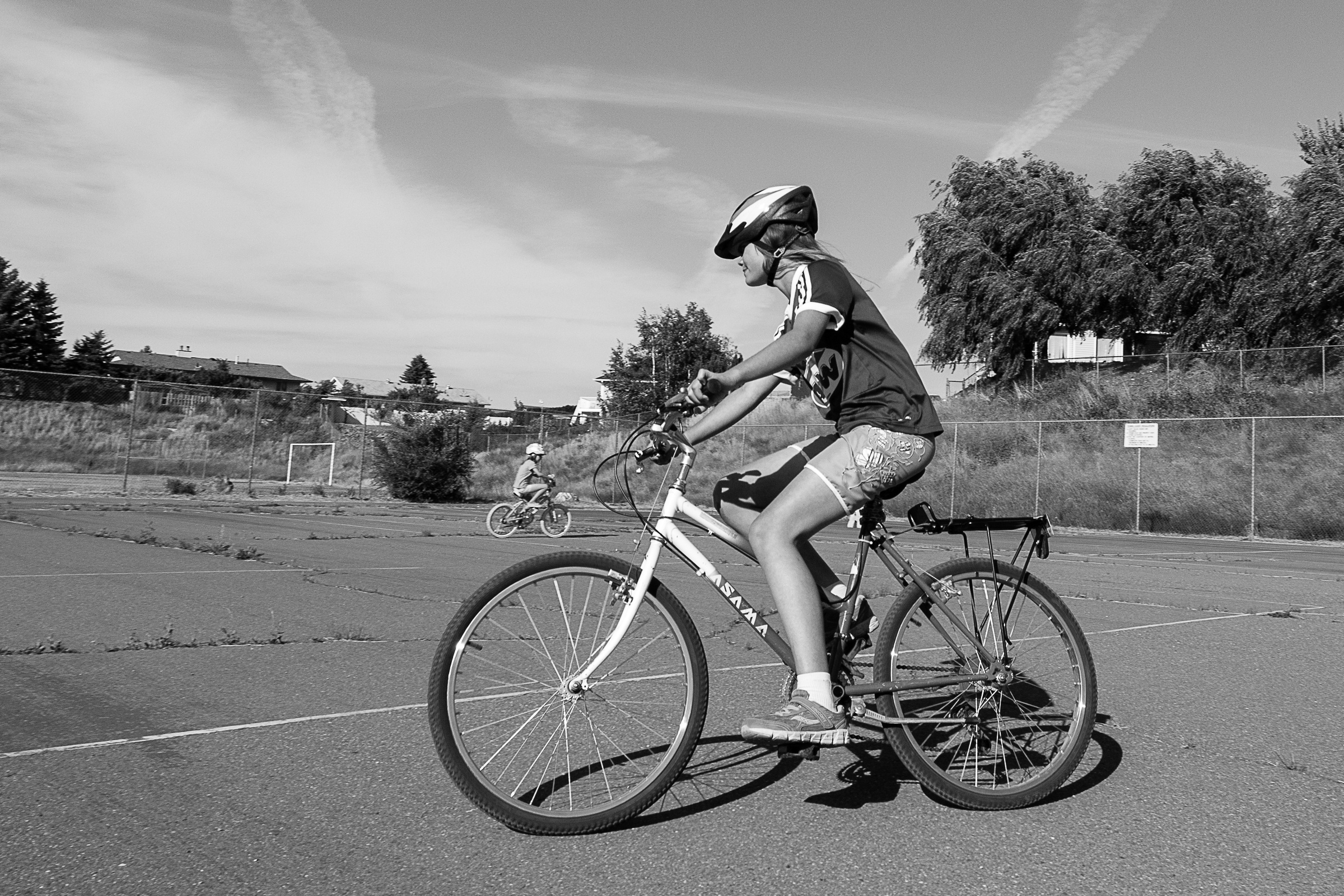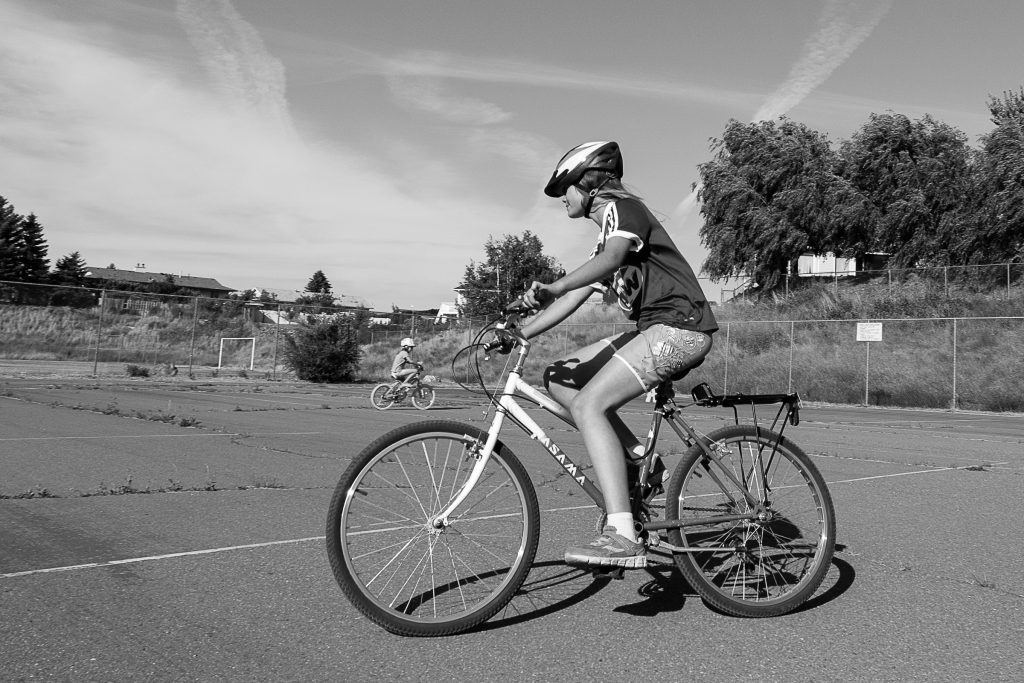 This photo is an example of how wide-angle lenses affect the relative size of objects in a photograph. The girl closest to the camera appears much larger than the second girl who is further away. This is because the girl in the foreground is much closer to the camera and lens (but in reality, the two girls are relatively close in size). Photograph by Leanne Cleaveley