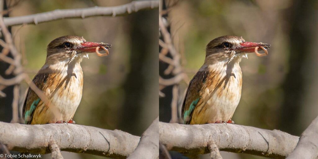 But what if you have more complex problems to solve? What if you have a branch crossing a bird’s body? Or a branch ‘growing out of its back? Or do you want to remove a watermark crossing a complex background?