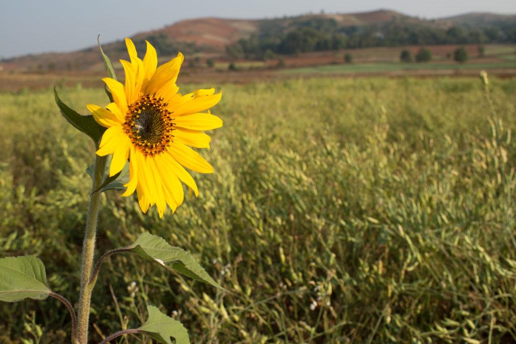 Starting with a simple image of a sunflower in a field, I want to boost the color of the flower’s center and then desaturate the color of the surroundings. This edit will draw more attention to the flower.