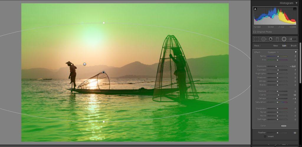 You have all the sliders available to you that you use in the Basic Panel of Lightroom. These can be applied to the area within the ellipse or outside of it. By also using the Brush tool within the radial gradient tool, you can customize the area that’s being affected.