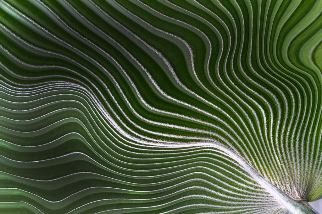 I used the Forward Warp, Pucker, and Bloat tools in the Liquify Filter to bend and twist the straight lines in this leaf. Photograph by Jenn Mishra