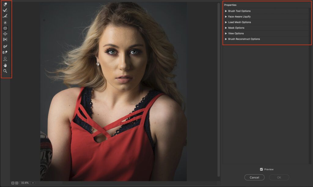 The Liquify Filter is not just one tool. It’s a workspace within Photoshop. Let’s start with a quick overview of the tools and layout of the Liquify Filter workspace.