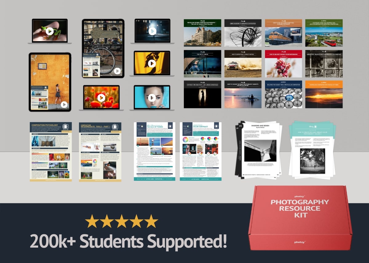 With this upgrade, you’ll have a sweet collection (27 resources) on creative composition. Including a 2-part guided video walkthrough, and 5 hands-on exercises & assignments for you to try!