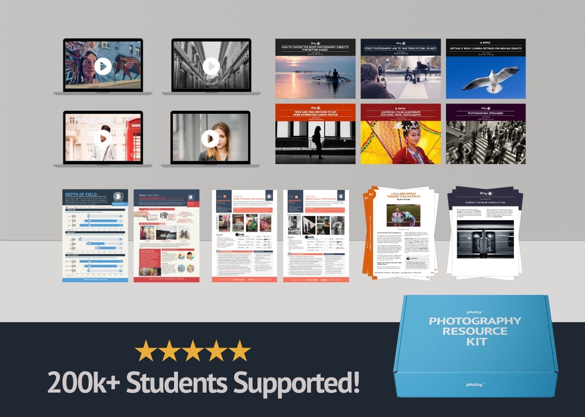 With this upgrade, you’ll have a sweet collection (17 resources) on street photography. Including a 2-part guided video walkthrough, and 3 hands-on exercises & assignments for you to try!