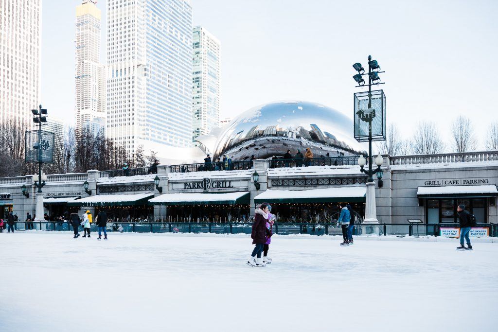 I was testing out some gear, and it was one of the coldest days in Chicago. I knew the skating rink would have people there no matter what, and I was able to get some iconic Chicago landscapes in the frame: the bean, downtown, and locals who are weather resistant! Photograph by Karthika Gupta