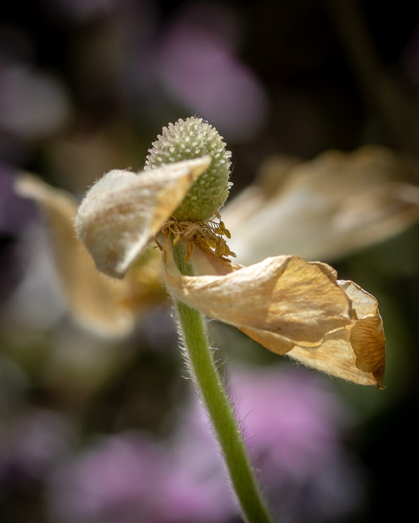 In the image above, I decided to showcase the wilting flower against a backdrop of colorful flowers in the garden. This juxtaposition was purposeful, to accentuate the imperfections of the foreground flower. Would this image be as effective against a different background or do the colorful flowers heighten the effect?