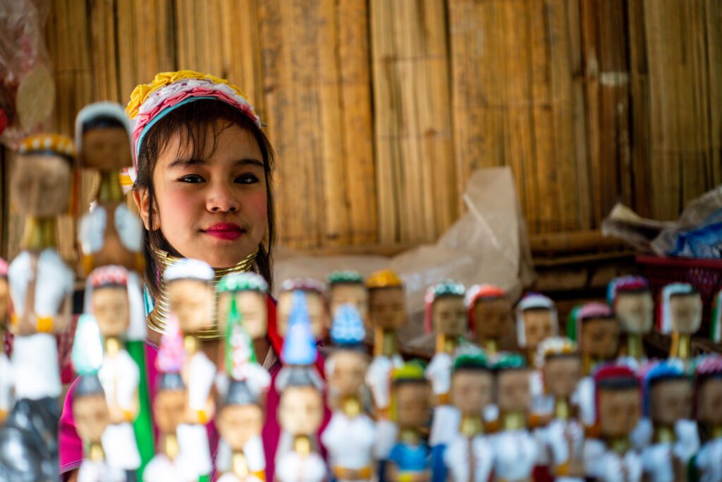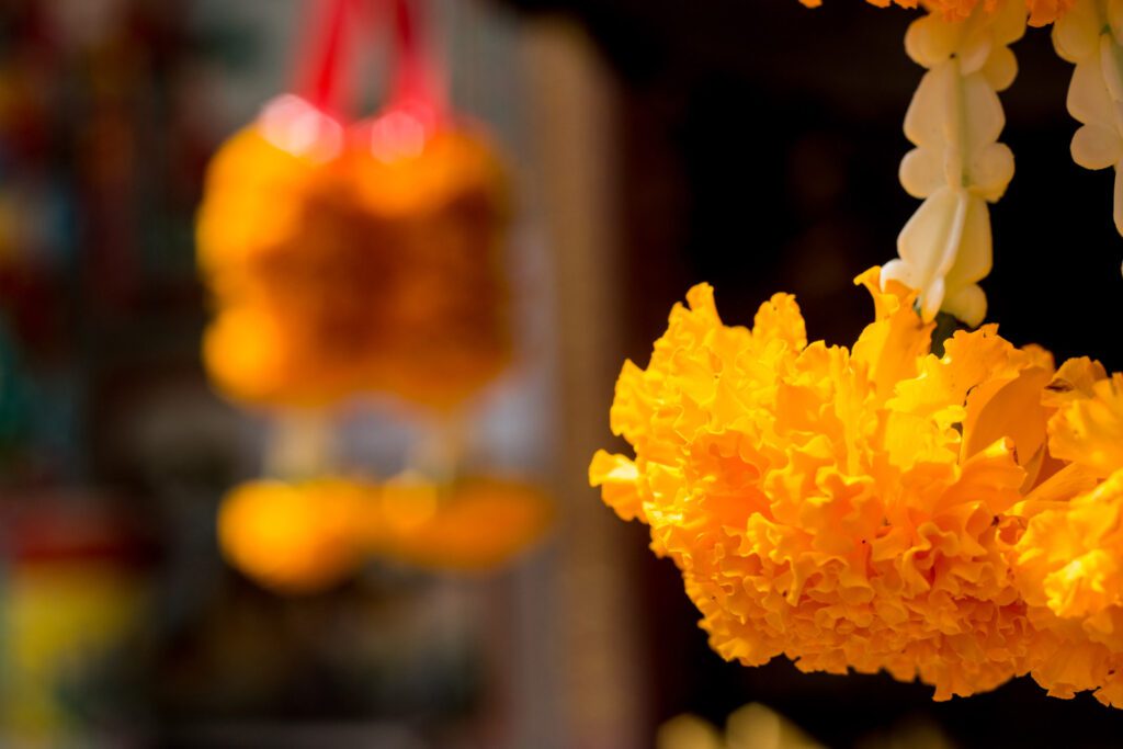 In this image of a statue at Wat Sri Suphan in Chiang Mai, Thailand, I used elements in the foreground to frame and crop the statue. Also using a shallow depth of field means the foreground elements are very blurred. This gives the impression they are much closer to the camera than the statue is.