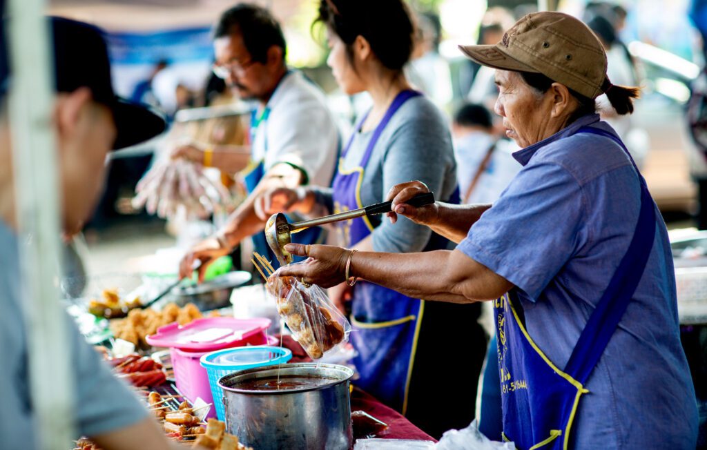 In this photo of the market vendor preparing some snacks for a customer, I wanted the focus to be on her and what she was doing. I positioned myself so her face, her hands, and the plastic bag were the same distance from my camera. I wanted them all in sharp focus.