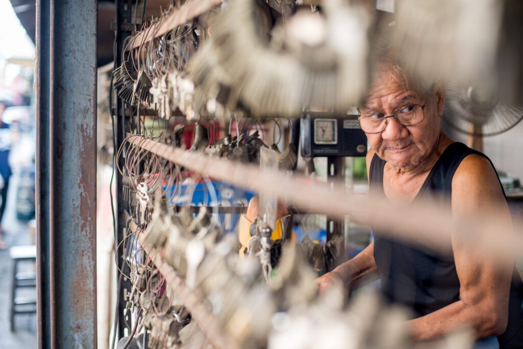 In the image above, I made use of the racks of keys hanging in front of the key maker in his shop to frame him. It’s hard to make out what’s in the foreground because it’s so blurred, but the effect of depth is clear.