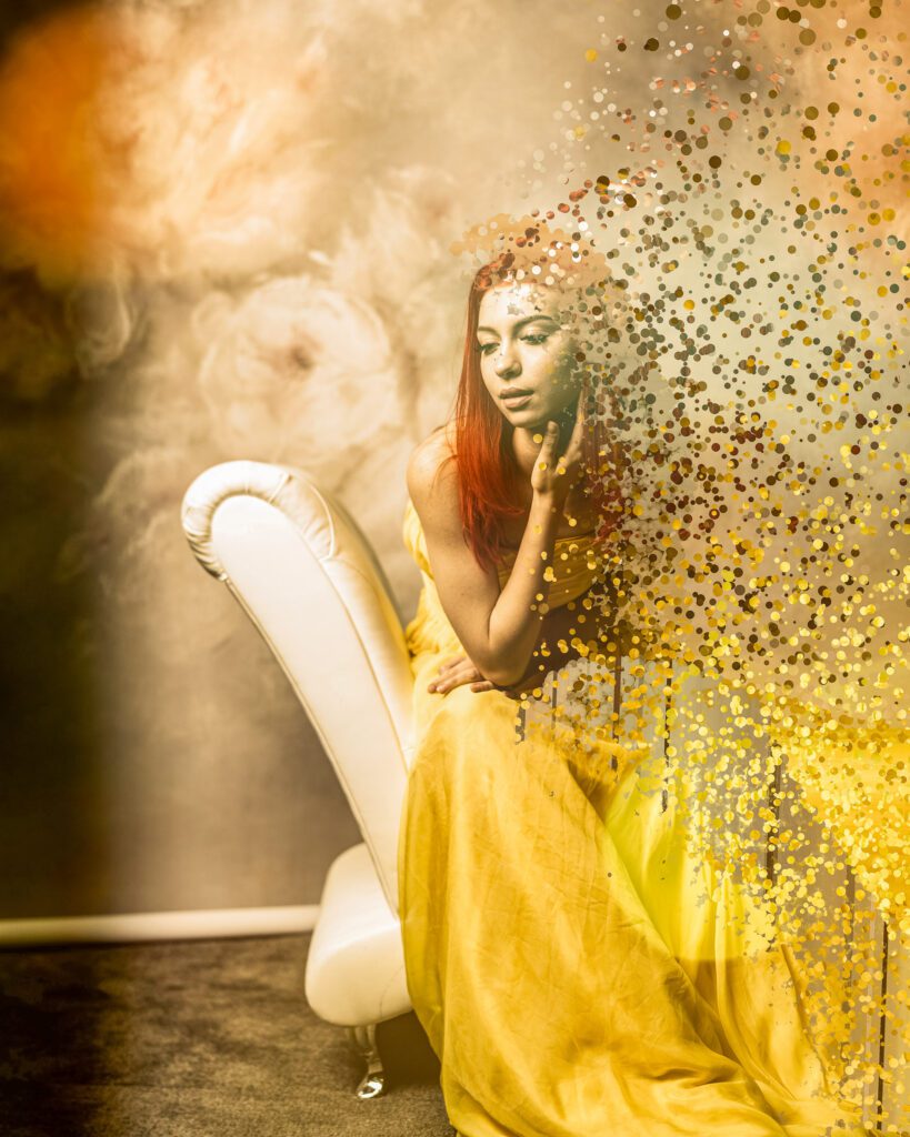 PhotoDirector 365 has a dispersion effect that lets me control what parts of the image appear to disintegrate. I can also control the direction, size of dispersion elements, spacing, and shape of the effect. Photography by Jenn Mishra
