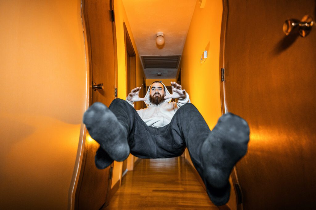 A popular surreal effect is a levitation. People appear to hover in impossible ways, or books fly around the room. You may be surprised to learn that levitation pictures are mostly real. The effect is set up in advance, and a little photo editing completes the illusion. Books are suspended by a string from the ceiling. Removing the string in post-processing makes the books appear to fly. Models are supported by a chair or a stool. The support is removed in post-processing. All it takes is a little imagination and creativity.