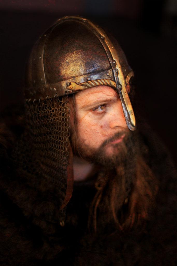 Another 50mm shot from the same session with a medieval re-enactor posing in chain mail. The shallow depth of field given by the f1.4 aperture was a perfect way to give the shot a little more mystery. Photograph by Robin Nichols