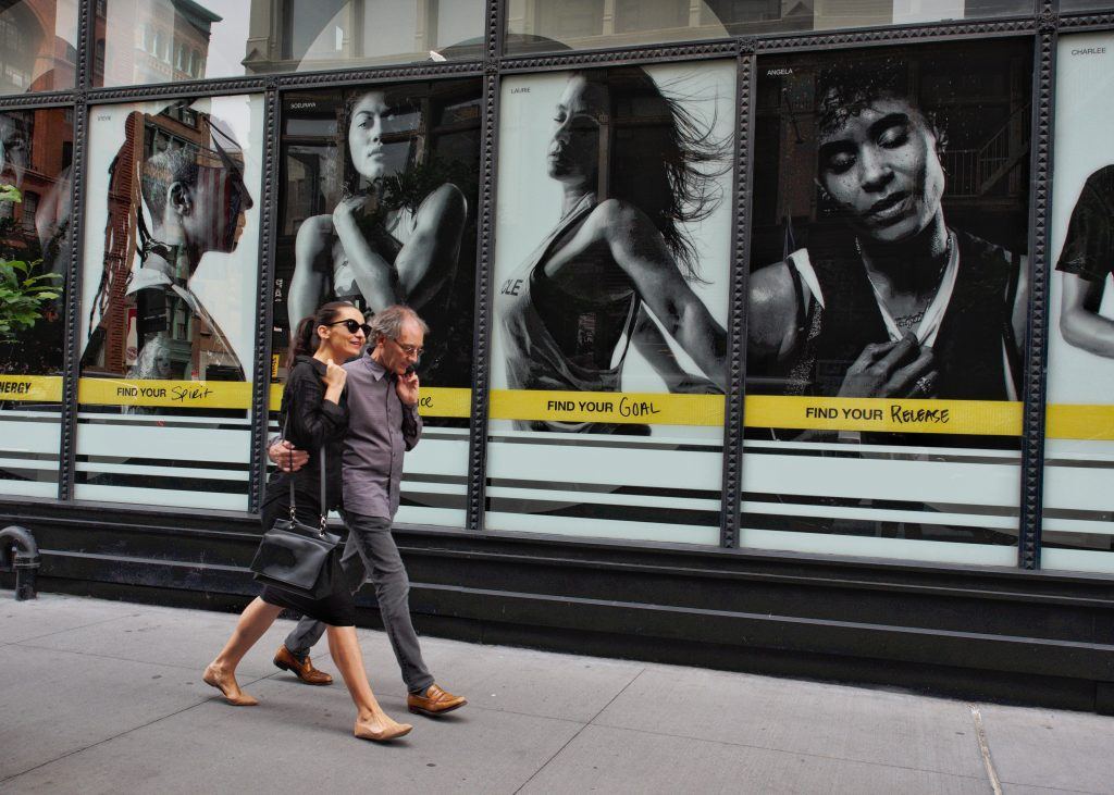 For example, it was comparatively easy to “fish.” Fishing means choosing a background that will be the cornerstone for the composition first. It can be chosen because of the lines, color, or text of signage