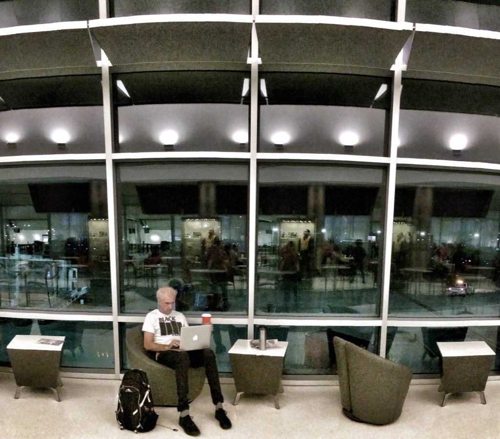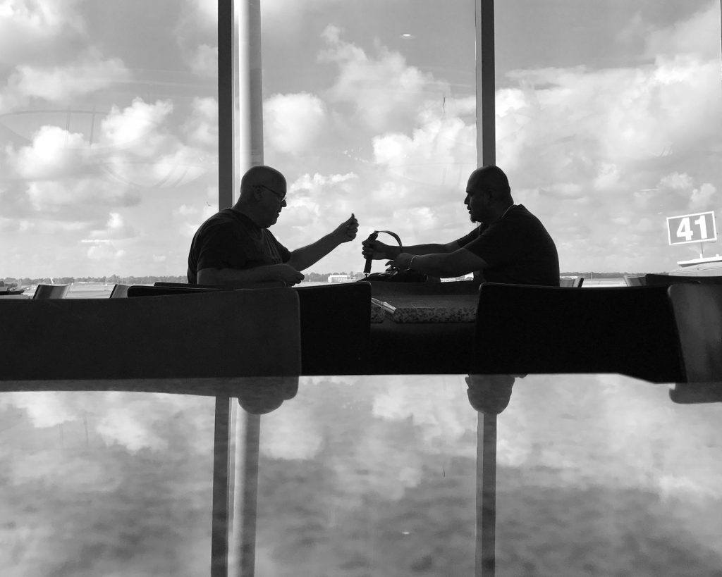 I like to shoot in airports. They typically have large windows that let in a lot of light. There are also often highly polished, reflective surfaces from floors or counters. This provides an opportunity to practice using my iPhone to take dandy silhouettes that come from backlighting.