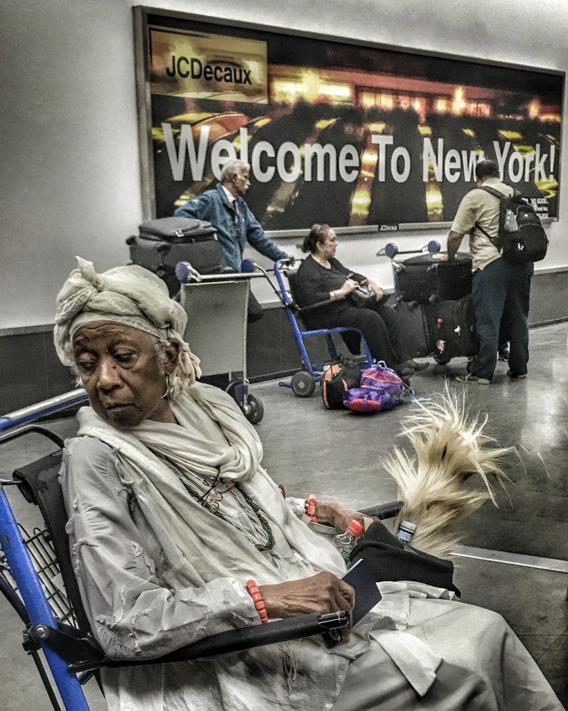 I attempted to get a picture of this elegant lady (above) from the moment we got off of the plane. Finally, she and I were wedged in a sea of people trying to get luggage. Yes, it would have been better if she had been looking toward me. The compensation is the splendid “Welcome to New York” sign in the background.