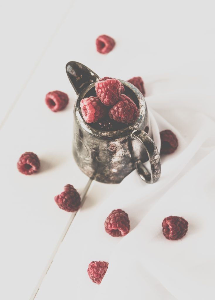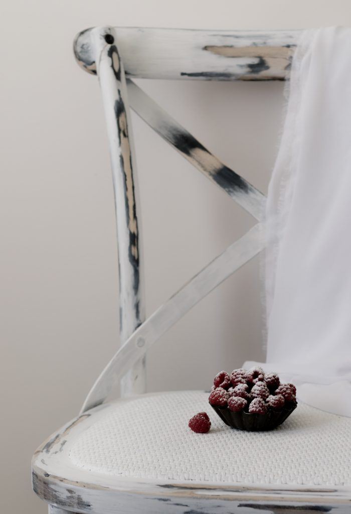 This was one of my final images taken using the raspberry setup – the white has been pushed into the high key range and the shadows are very soft and faint. I added a matte preset in Lightroom to further add to the “soft mood” of the image. The red on the berries has been tweaked to give them more color and pop, as they were the hero of this shot.