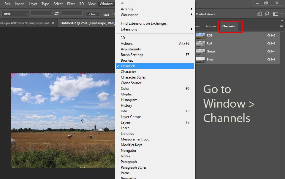 As I mentioned earlier, we’ll use a combination of Channels and Masking to extract the sky. First, you have to access Channels TAB by selecting Window > Channels. This will make the Channels TAB visible if you are not seeing it.