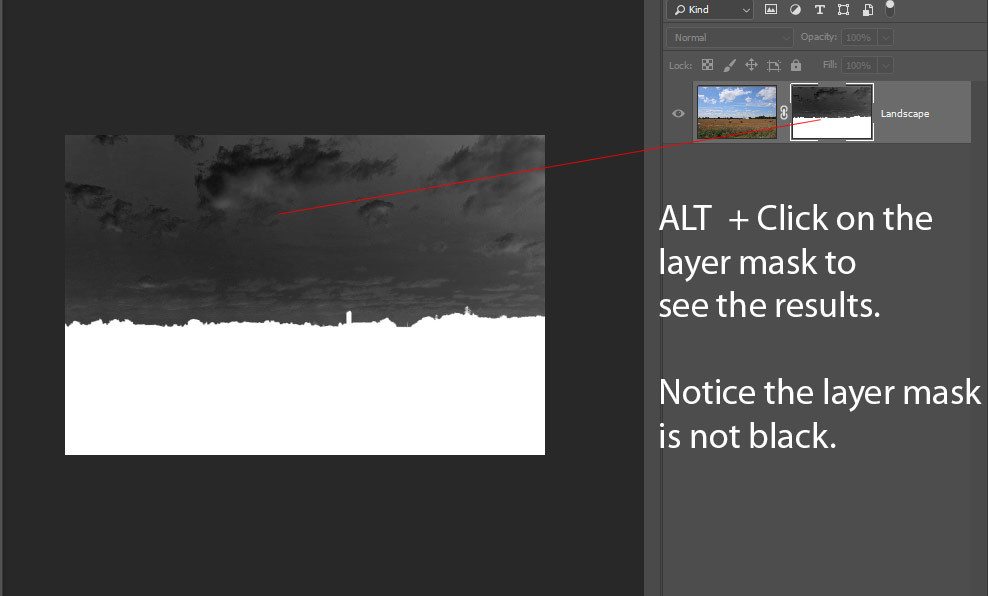 Once you invert layer mask results you can see we have extracted the sky but there is a lot more we can do to improve it further.