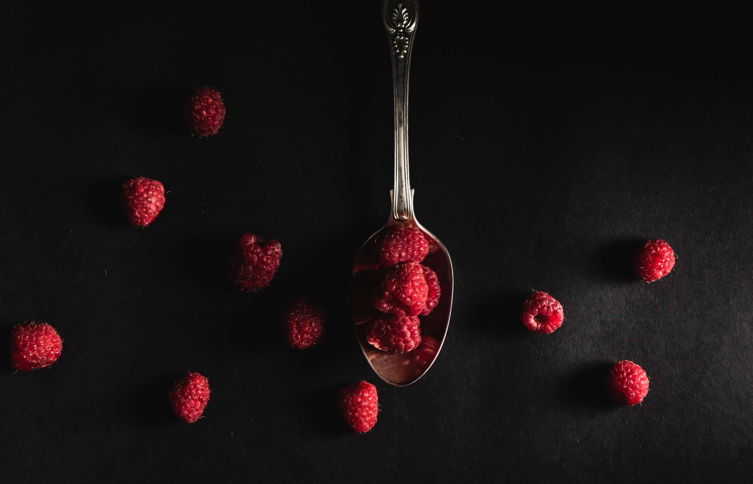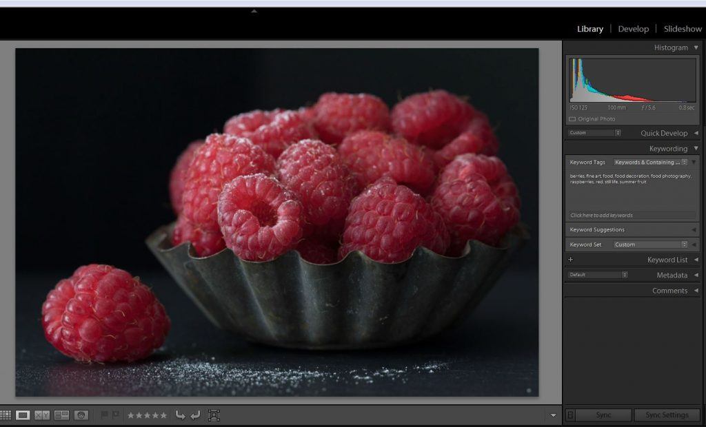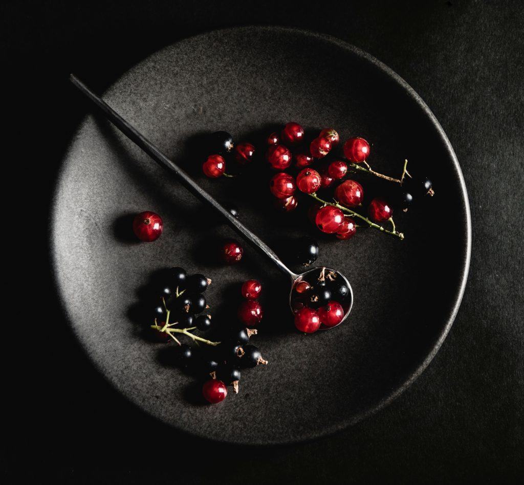 I lowered the exposure dial on the camera so the image was underexposed enough to intensify the blacks, but not so much that the berries were so dark they would look unnatural when edited.