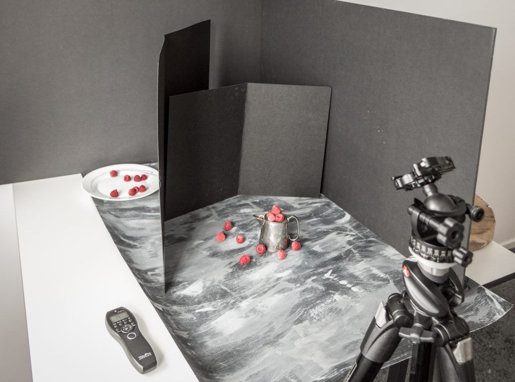The most important thing with low key is how you shape and control the light. For my food and still life photography I use black foam core sheets and black cardboard sheets of different sizes. These can act as backgrounds and backdrops – flags and reflectors to absorb light and add shadow.