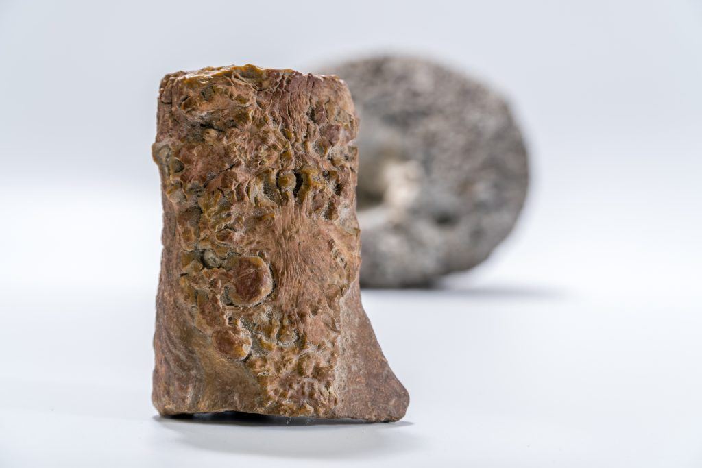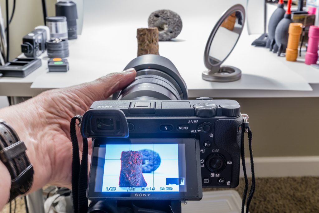 This picture of a fossilized bone and a brain coral was set up to illustrate the use of the focus magnifier and peaking features on my Sony A6300s. As far as I know, DSLRs do not have those features; you just rotate the focusing ring until the image appears sharp. The film SLRs I used had as many as three concurrent focusing aids: a groundglass, a split-prism, and sometimes a microprism as well. But my understanding is that modern DSLRs have dispensed with all but the simple groundglass because the autofocus is nearly foolproof. Nearly…