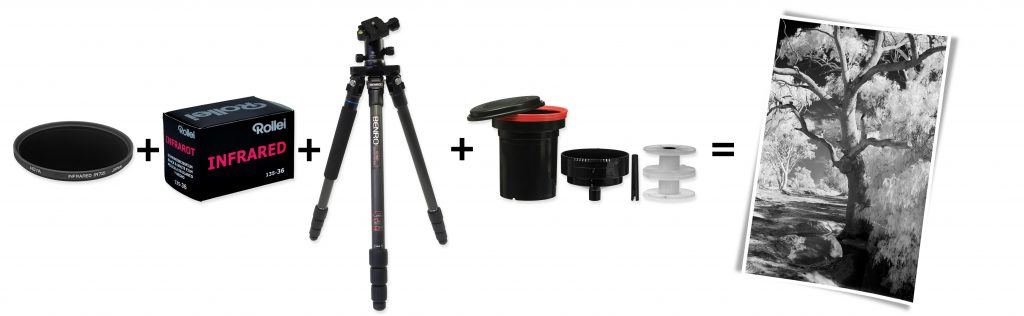 Though hard to illustrate, the process of infrared black and white photography was (and still is) a long process, fraught with possible errors. To start, you had to use a tripod. Then you composed the shot, adjusted the focus (using the infrared mark on the lens), added the infrared filter, and then calculated the exposure before processing the film and making prints in a wet bench darkroom. Now it’s a bit easier because you can get the negatives scanned to produce a digital file. Even so, this is not an instant process. Photograph by Robin Nichols