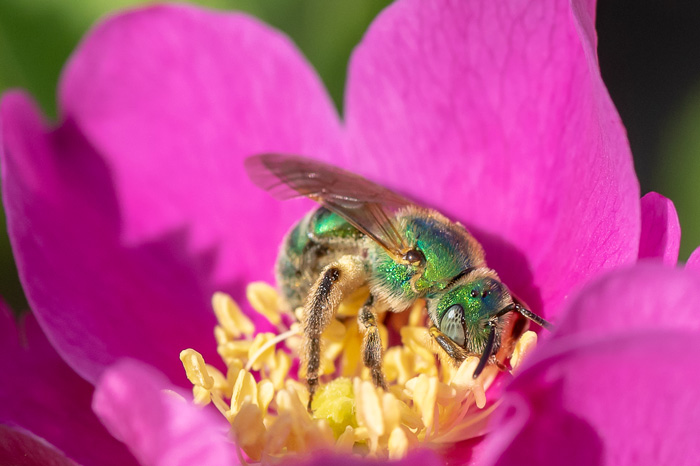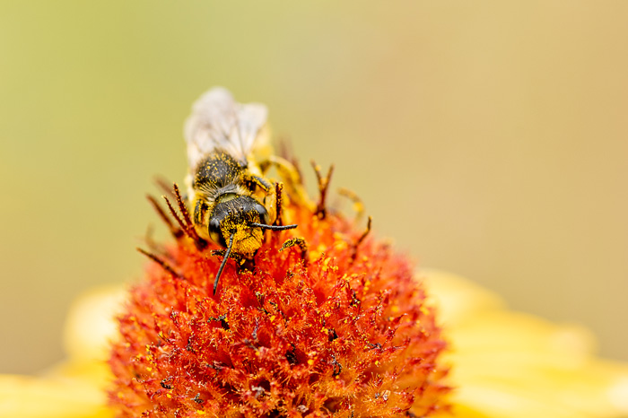 Leanne worked hard to learn how to take macro photographs like the bee gathering pollen.