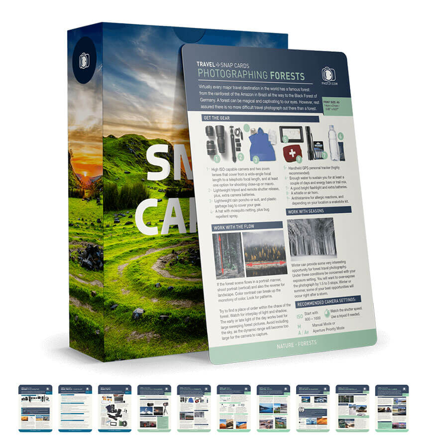 This Booster Pack will give you 31 more user-friendly cheat sheets, covering the key fundamentals of travel photography. Broken into 6 categories and color-coded for simplicity. Recommended if you want the key points faster.