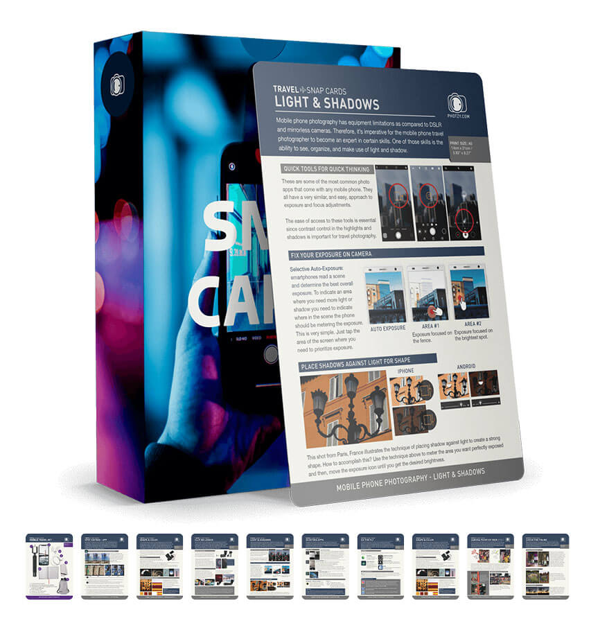 You’ll Learn: On the Fly, Light and Shadows, Clip on Lenses, Check the Frame, Smartphone Travel Kit, Camera Point of View, Shape and Color, Shooting Apps, Spot Editing + So Much More!