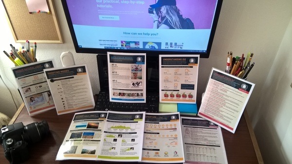 44 bright, colorful, and easy to understand printouts, covering a HUGE range of themes and topics from beginner to intermediate photography.
