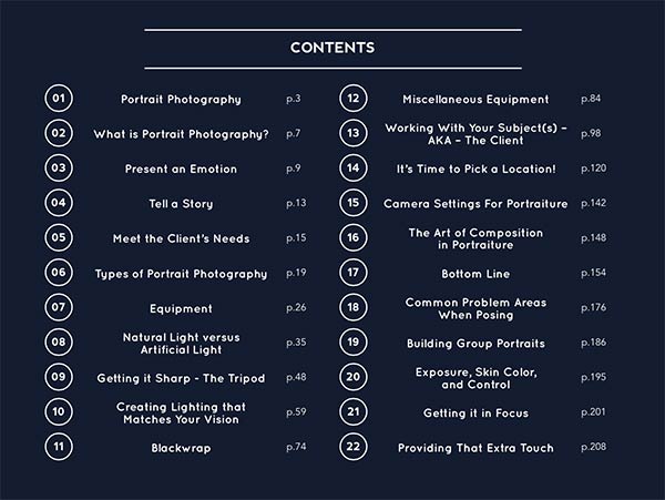 You’re getting 214 pages of fast easy learning packed with illustrations, case-studies and assignments to verify your knowledge. Get ready to absolutely transform your portrait work.