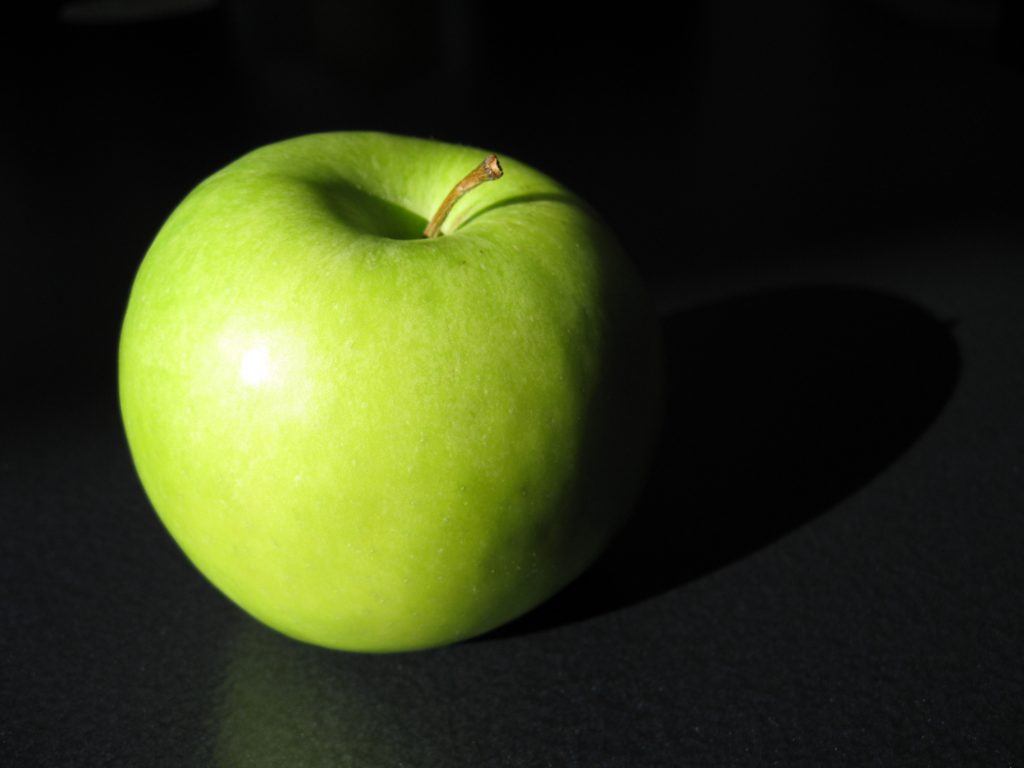 the light on the right side of the apple. That’s your fill light. It lessened the strength of the shadow. Compare this with the first apple photo that only had a key light.  Photo by wjlonien