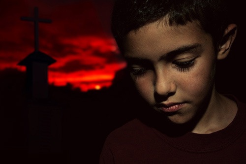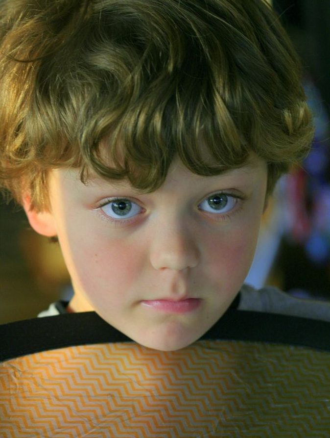 The photo of the girl above and the photo of the boy below show that natural light is coming from the back. That being constant, both photographers decide to add light from the front. The point source added functions as fill-light since it lightens the shadows created by the light from the back. However, it is still essentially a key light function since the same point source is the main source of illumination for the subject.