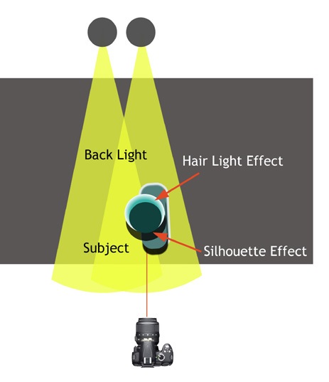 Take a look at the silhouette photo of a person above. There is barely any light falling on the camera side of the face. Because of this you will notice the strong hair-like outline created by strong back lights.