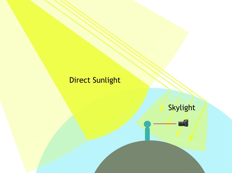 Aside from objects reflecting back the light coming from the sun, the earth’s sky acts like a gigantic diffuser that spreads the light to earth. Take a look at the diagram on the right.
