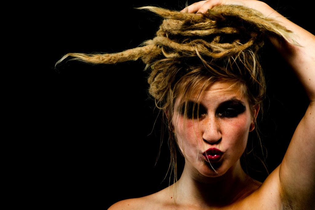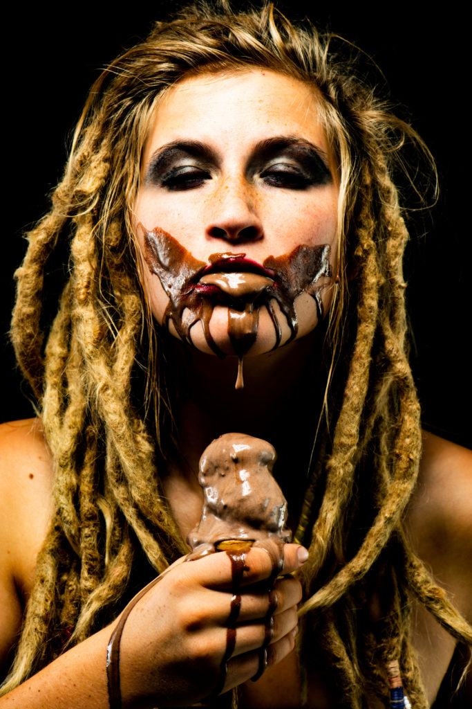 For the second set of photos, I used a dark background and a single light above her. This created some nice dark shadows. We also switched to chocolate ice cream. The overall tone of these portraits was much darker.