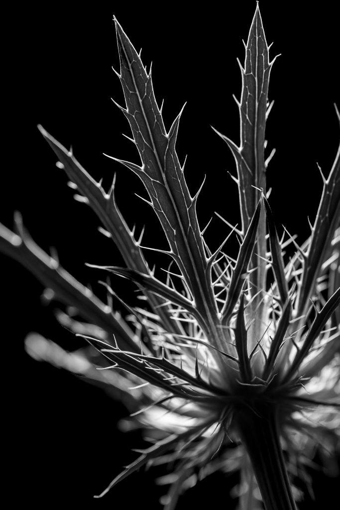 The use of flash to create backlight in this image really draws attention to the shape of the plant’s spiny leaves by highlighting the outer edges. The backlight also allows us to see the veins on the leaves more clearly. Photo by Leanne Cleaveley