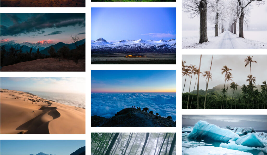 Do you see a common trait among the photos in the image above? They are all in horizontal landscape orientation. Go to any photo website such as Unsplash, Pexels, Flickr, or simply Google ‘landscape photos.’