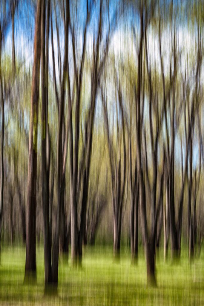 In this tree photo (above), the trees are static. They aren’t moving. A motion effect is created because I moved the camera.