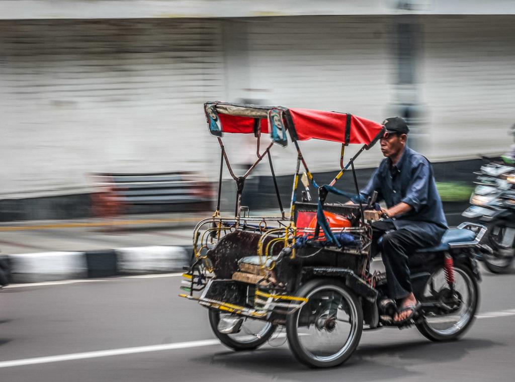 Panning catches this vehicle called a Becak in Indonesia. Photograph by Ivan Hermawan