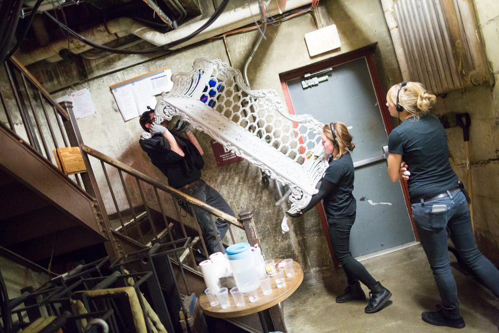Backstage theater crew all wearing black. Photo by The Huntington